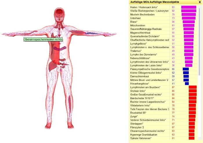 Über 600 Parameter geben Aufschluss über Energieflüsse, Zellfunktion, die Kommunikation zwischen Organen und Nervensystem oder Belastungsfaktoren und Blockaden. Im Zuge eines individuellen Zelltrainings werden auffällige Systeme (Organe, Membrane, Nerven, Zellverbände, etc.) im Anschluss an die Messung, über gezielte eingespielte Elektrofrequenzen, neu moduliert.